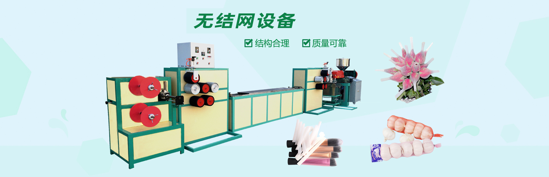 龍口市山河塑業(yè)有限公司生產(chǎn)的發(fā)泡網(wǎng)套機(jī),用于水果、蔬菜、花蕾及瓶類的外包裝。我公司具有多年的實(shí)踐經(jīng)驗(yàn)和可靠的技術(shù)力量,根據(jù)市場需求開發(fā)各種規(guī)格的網(wǎng)套。每24小時生產(chǎn)蘋果網(wǎng)套80萬-120萬個,設(shè)備驅(qū)動電機(jī)采用變頻控制,調(diào)速精度高、范圍廣、能耗低、運(yùn)行可靠每小時僅用電10度左右,產(chǎn)量提高。此外,該生產(chǎn)線配置不同的模頭和輔機(jī)可生產(chǎn)發(fā)泡片、發(fā)泡管、發(fā)泡棒、發(fā)泡條及異型材等產(chǎn)品。